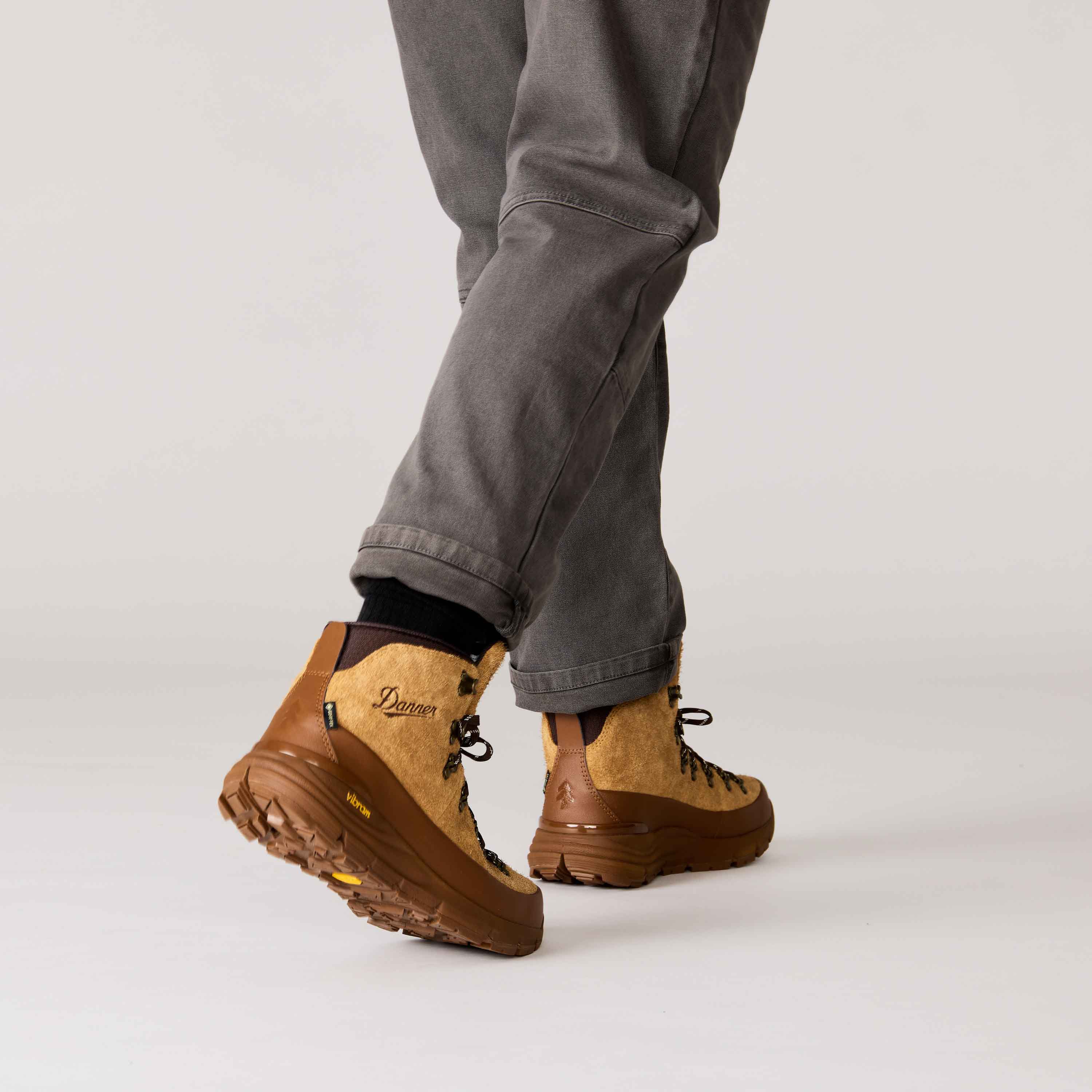 Inspired by decades of legendary hiking boots, we partnered with Vibram to forge a new path in hiking footwear. The combination of the Vibram SPE midsole and Fuga outsole gives an unparalleled grip on wet and dry surfaces while providing superior cushioning without the weight. Designed to withstand the climate and terrain of the Pacific Northwest, we utilized a rugged, waterproof suede upper and GORE-TEX waterproof protection. The Mountain 600 defines a new category in hiking boots we call Performance Heritage - combining our classic styling with lightweight innovation.
